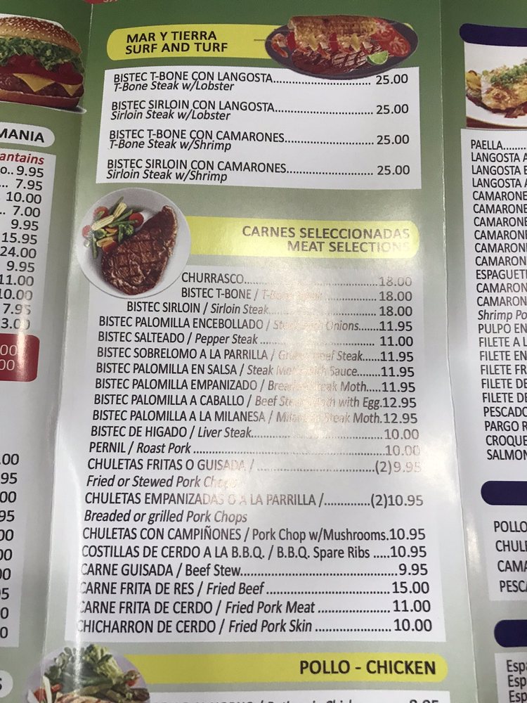 Fried fillet. Served with rice and beans or green or yellow plantain or french fries or salad.